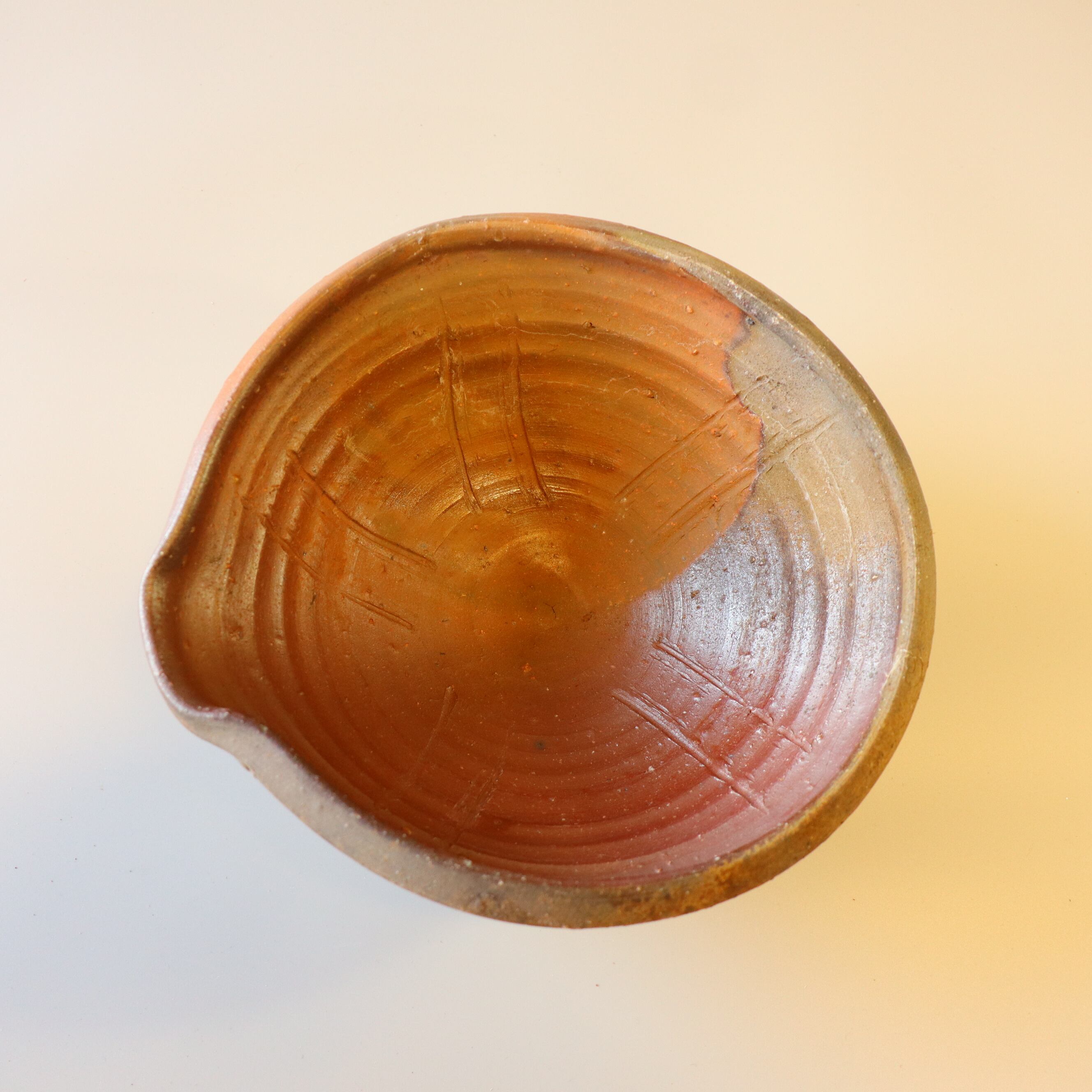 東児の花窯 備前焼 片口サンギリ鉢 景色:サンギリ ヒダスキ サイズ:縦25cm 横24cm 高さ10cm