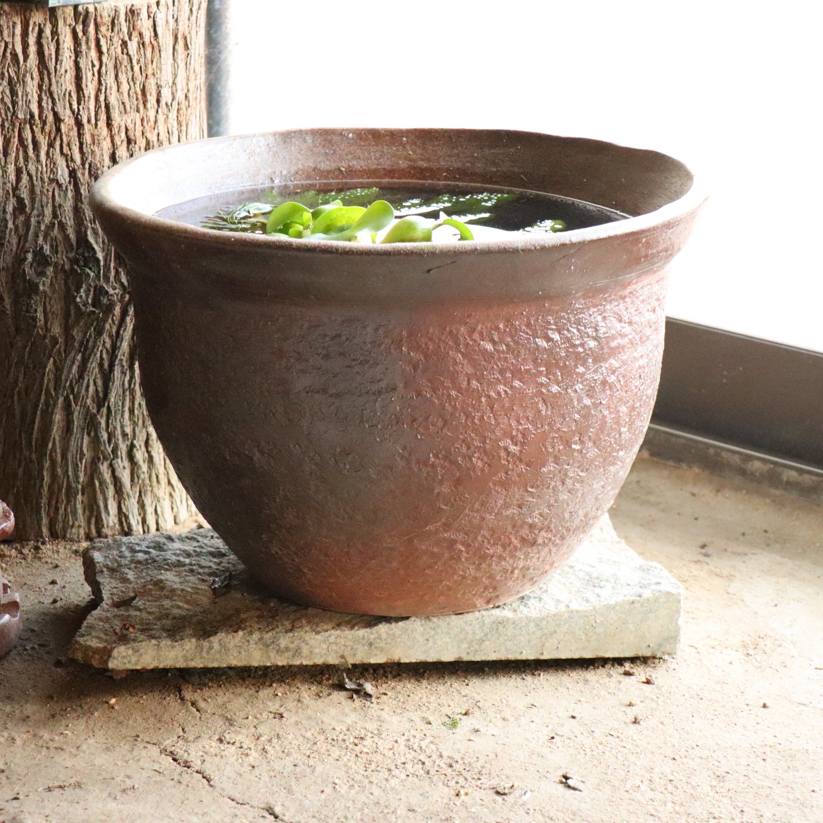 備前焼の睡蓮鉢 メダカ鉢は、癒やしの空間を演出します。自然な風合いと美しい焼き物の模様が、和の心を感じさせます。お部屋やオフィスに置くだけで、リラックス効果が期待できます。